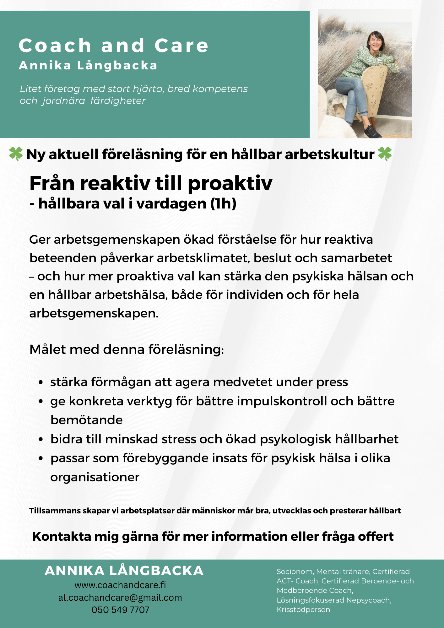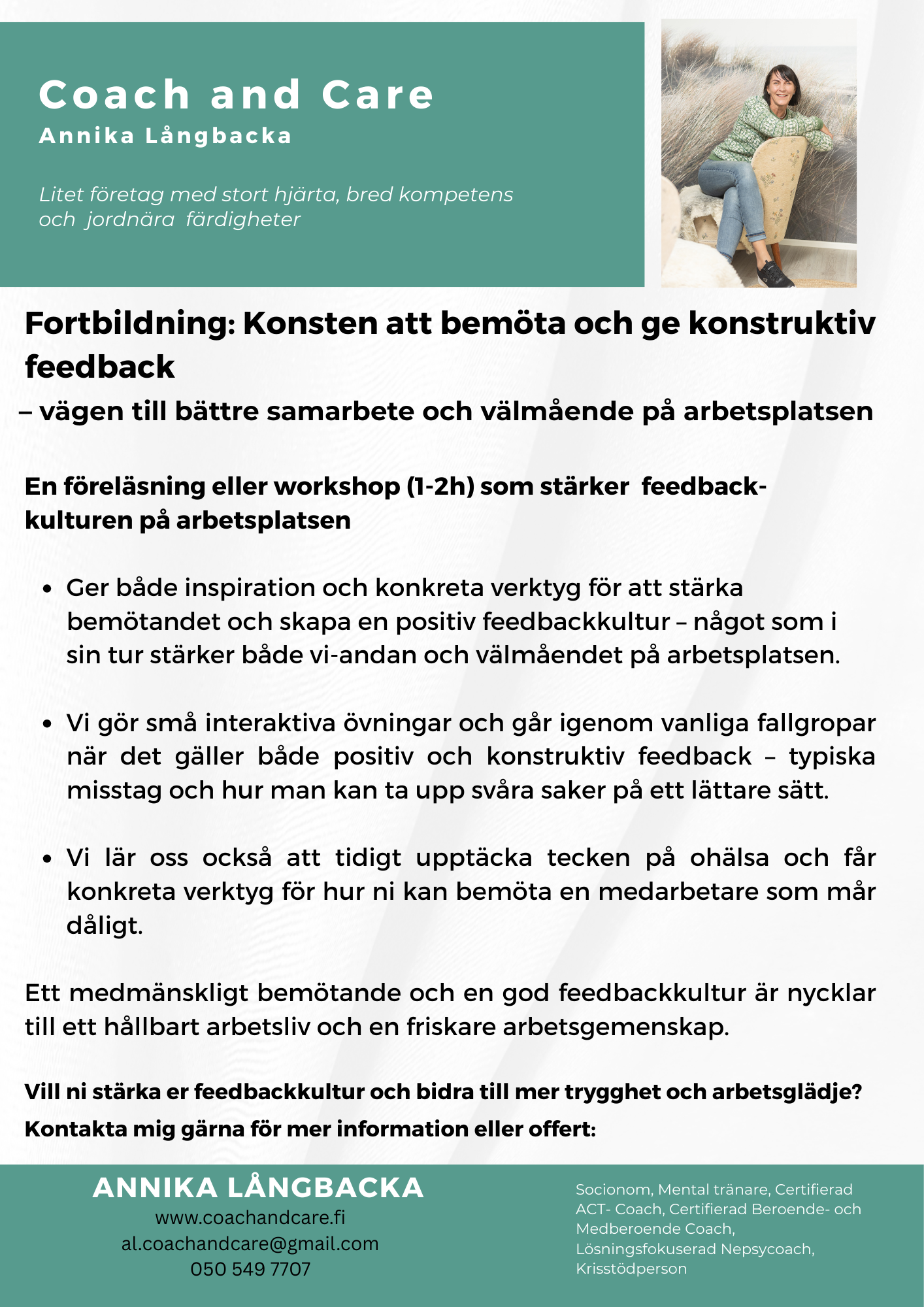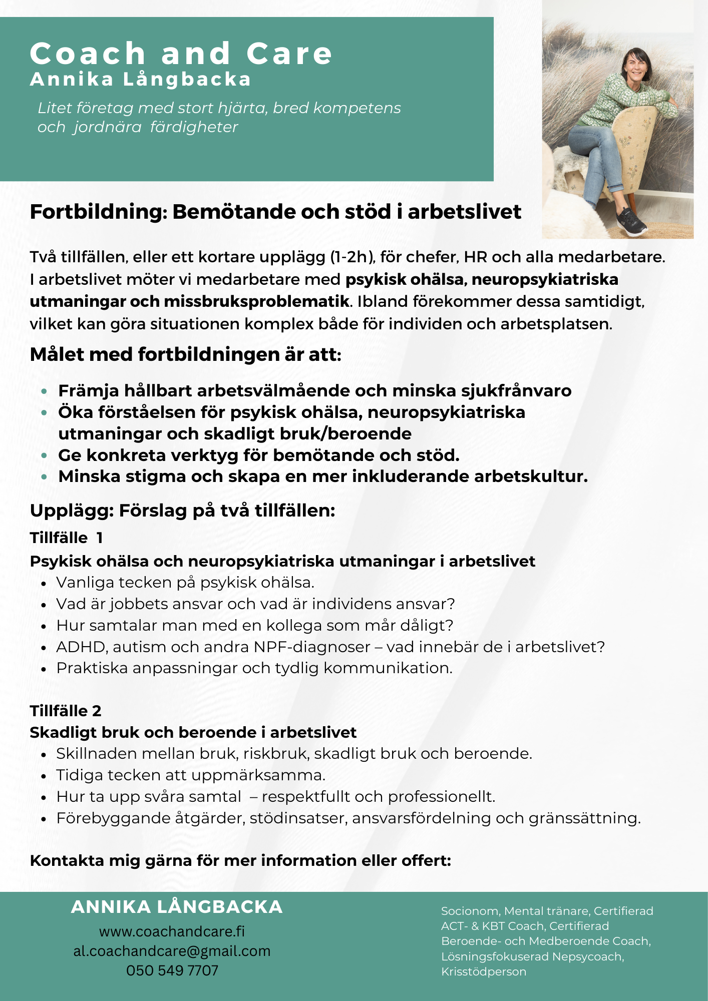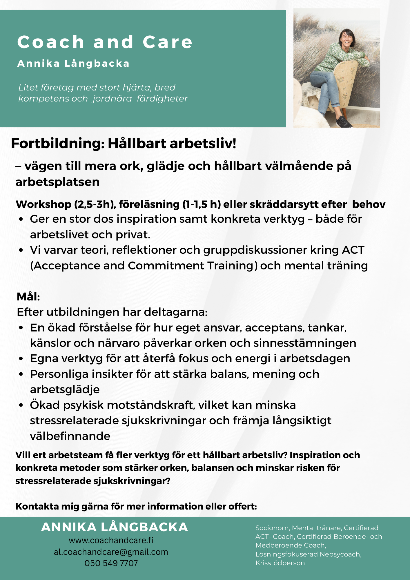 Vill ni ta nästa steg mot en starkare och mer hållbar arbetshälsa? Kontakta mig för att diskutera hur vi kan skapa något som passar just er!